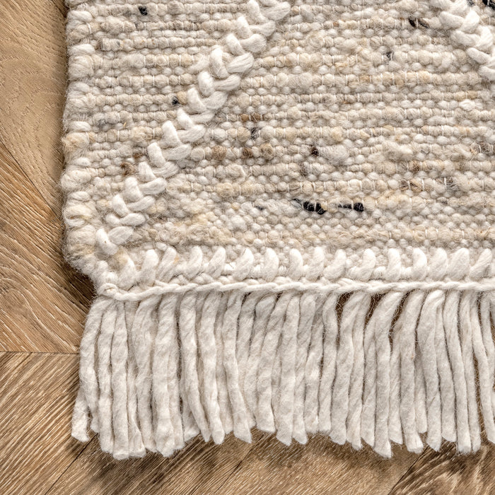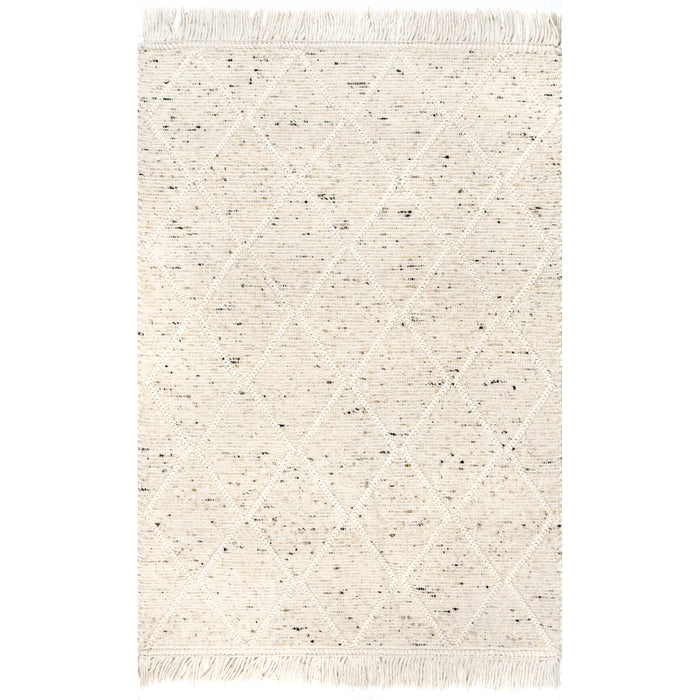 Brooklyn Textured Trellis Wool Fringe Area Rug