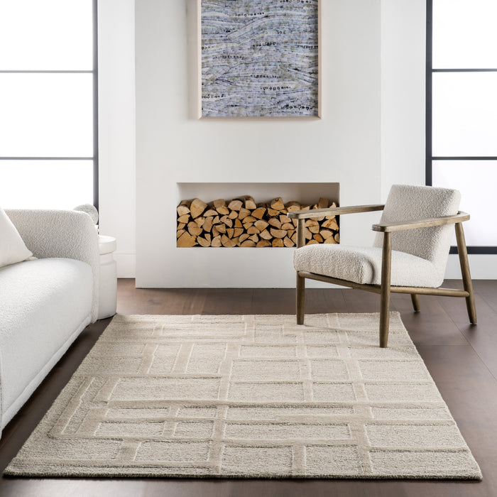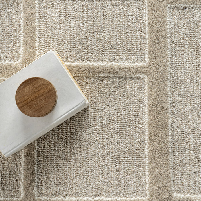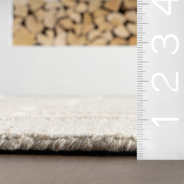 Introducing the nuLOOM Aerith Modern Geometric Area Rug, a sophisticated centerpiece that embodies contemporary elegance and superior craftsmanship. Handmade with meticulous attention to detail from a blend of 95% Wool and 5% Other Fibers, this rug offers a plush and cozy feel underfoot. Its striking geometric pattern adds a dynamic focal point to any indoor space, whether it's your bedroom, living room, dining room, hallway, or kitchen, seamlessly integrating into modern decor themes. Engineered with a non-slip backing, the Aerith rug ensures stability and safety, making it perfect for high-traffic areas. Elevate your home with a rug that not only enhances your interior aesthetic but also delivers lasting comfort and style.