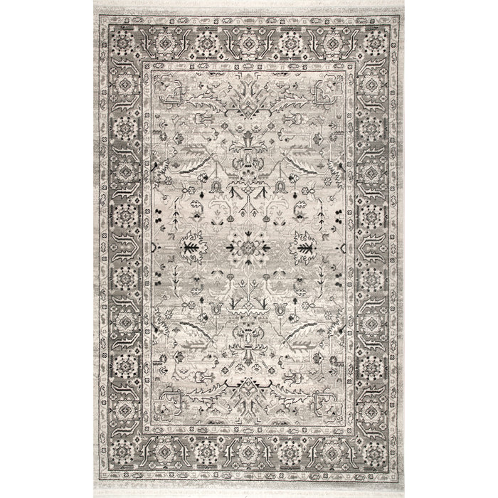 A traditional design that has the feel of an heirloom piece. Machine-made in Turkey from polypropylene, a soft but strong fiber that is stain resistant. This rug is finished on both ends with a short fringe.