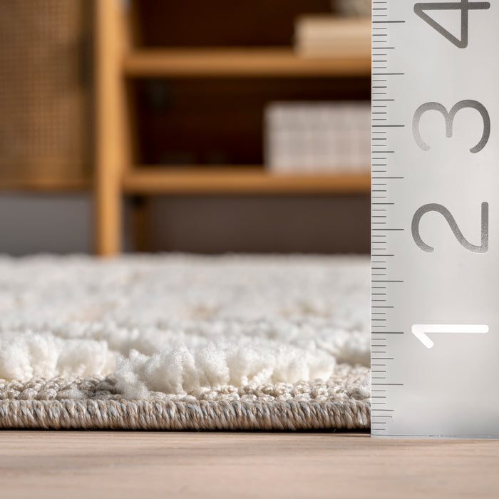 Create the space you have been dreaming of with this stunning Moroccan styled area rug. Featuring a high-low pattern of soft, luxurious fibers, this area rug is the item needed to complete the coziest rooms in your home. Whether placed in your living room, dining room, nursery, or home office, this rug will bring the elevated and completed look you have been searching for.