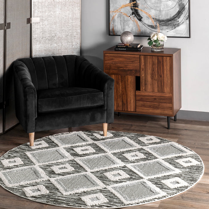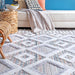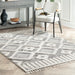 Take your space to new heights with one of our textured rugs. Featuring a high low geometric pattern, this neutral color palette will fit seamlessly in virtually any decor scheme. Machine made in Turkey of silky soft polyester.