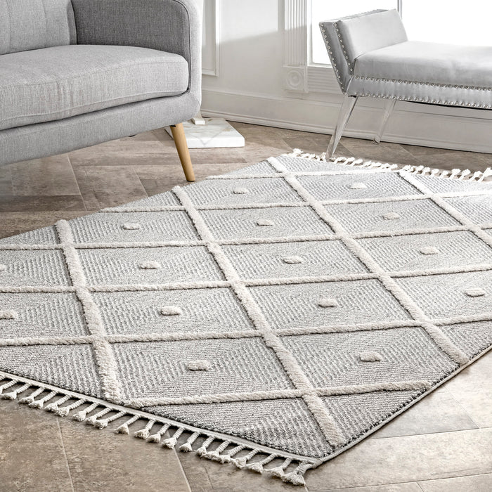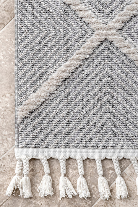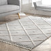 Stylish and versatile, this tribal pattern rug adds the right amount of chic to your space. Includes 3" braided tassels on either end for added charm