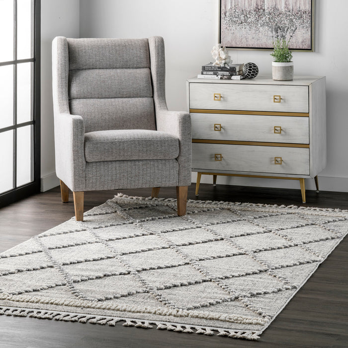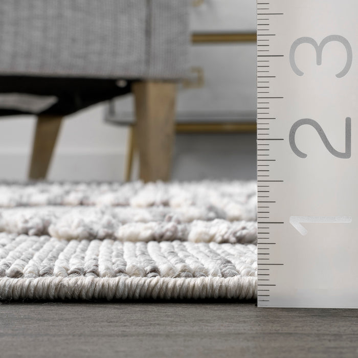 Complete your space with this geometric area rug. With neutral hues and a dynamically textured high/low pattern, this floor covering will pair perfectly with any décor from modern to bohemian. Machine made of synthetic fibers; this rug is built to last while remaining soft underfoot. Enjoy every room in your home with our easy to care for and pet-friendly area rugs.
