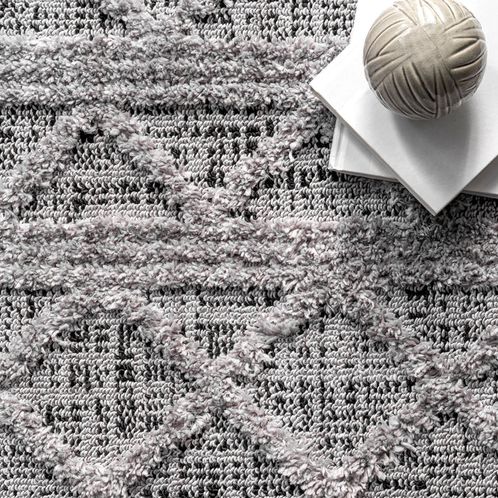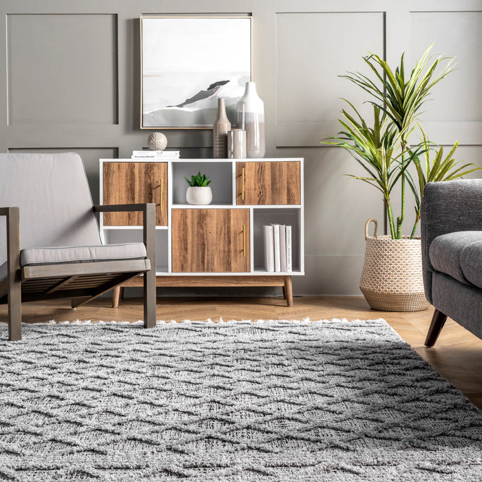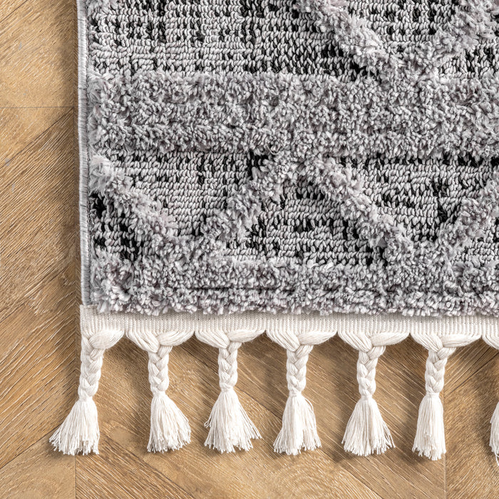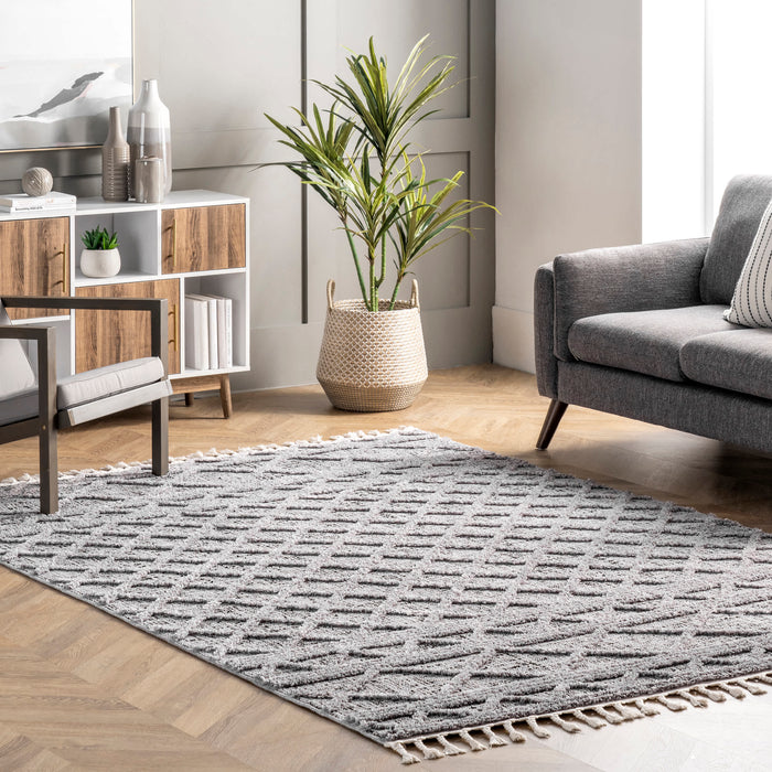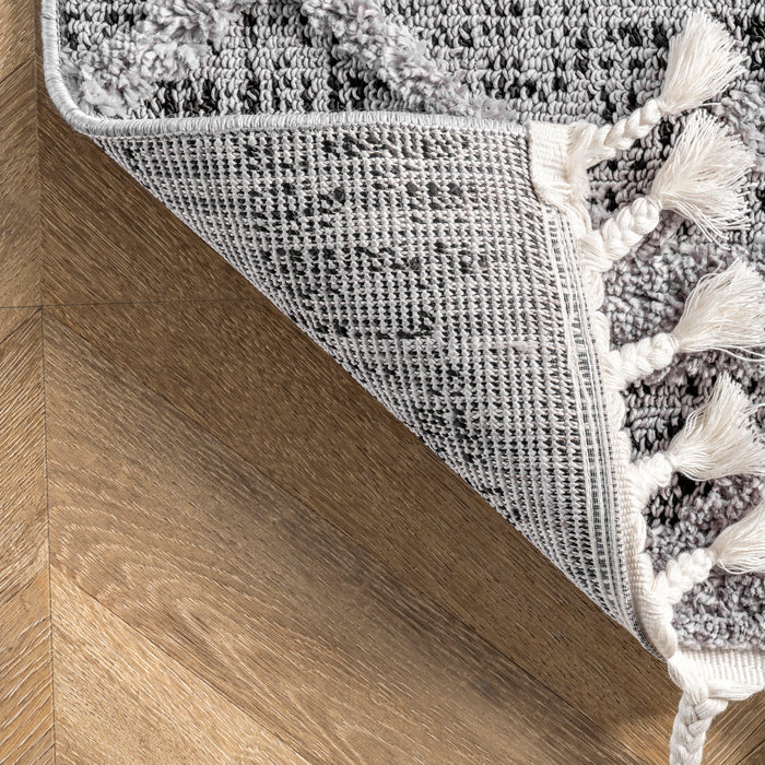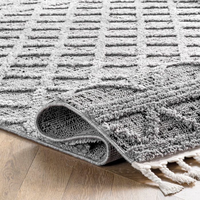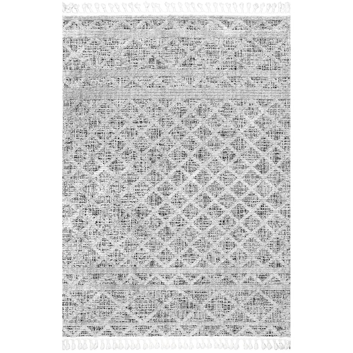 Dottie Soft Shaggy Textured Trellis Tassel Area Rug
