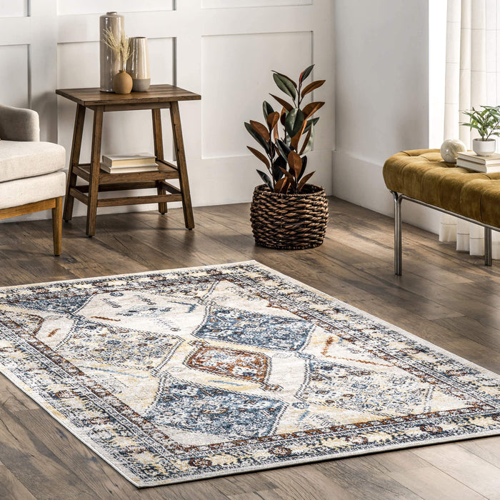 Clarabelle Machine Washable Traditional Diamonds Area Rug