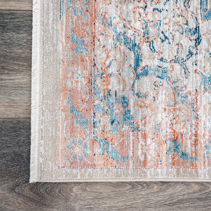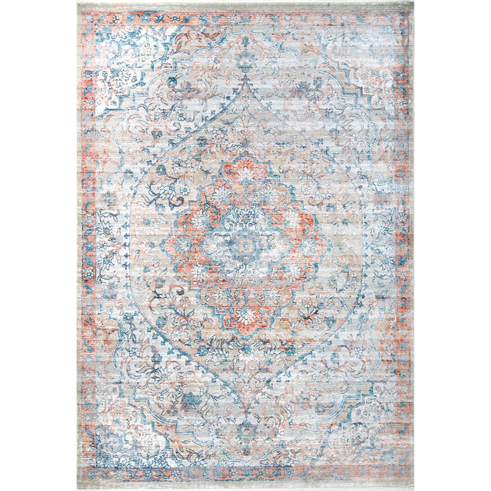 Bursting with transitional flair, this rug offers an up to the moment approach to the classic Persian heirloom. Machine made in Turkey of polypropylene, a material prized for its durability and ease of care.