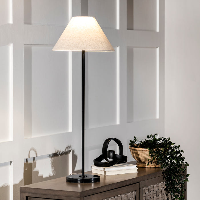 Meet the table lamp that has it all: a traditional design with a modern design aspect. A mysterious and bold home design style is created by a tall, ornate form with a sleek marble base, ready to warm up to any fixture. With a sculptural design that doubles as useful décor, this dazzling table lamp looks just as good off as it does on. Light is dispersed evenly by a warm empire shade. NuLOOM includes an LED bulb, which allows your illumination to effortlessly take center stage.