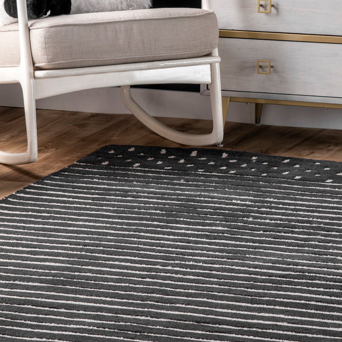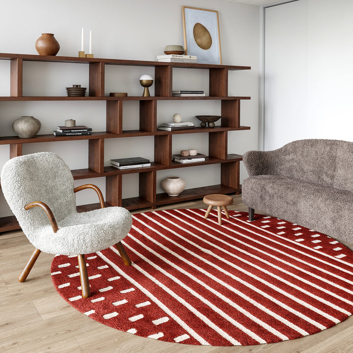 A striped moment. A dotted moment. A modern moment. All come together in the Mandia Rug, where pattern and texture create a look that’s both playful and refined. Hand-tufted and made of 100% wool, it’s luxuriously soft underfoot, perfect for walking, dancing, or simply enjoying in any space.