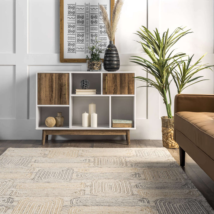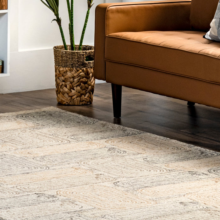 This hand-tufted wool rug with modern geometric design will add comfort and warmth to any contemporary home.