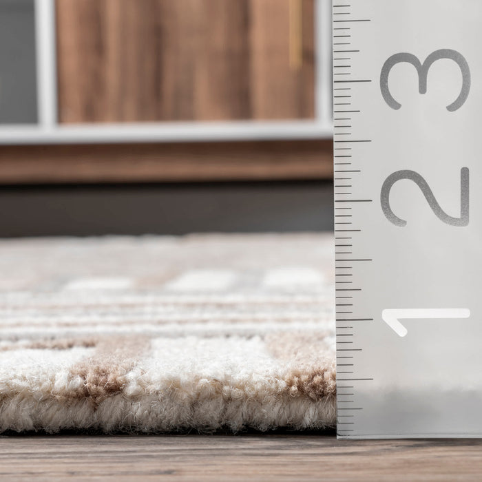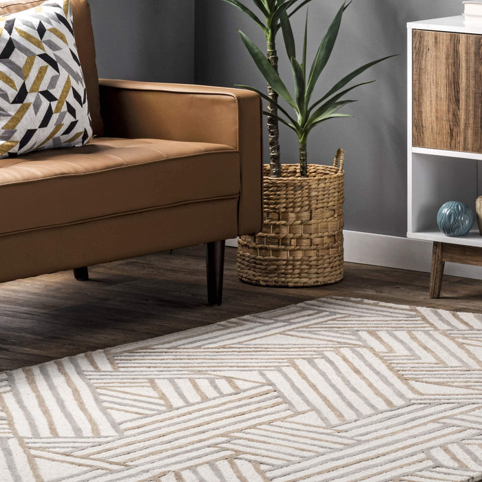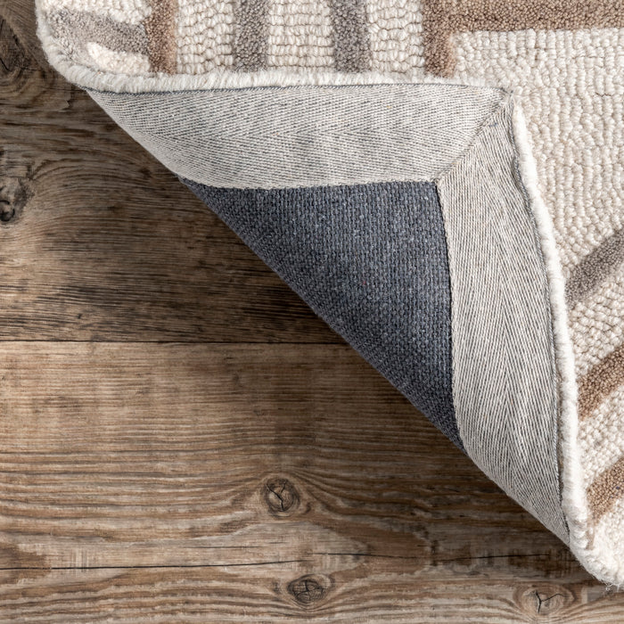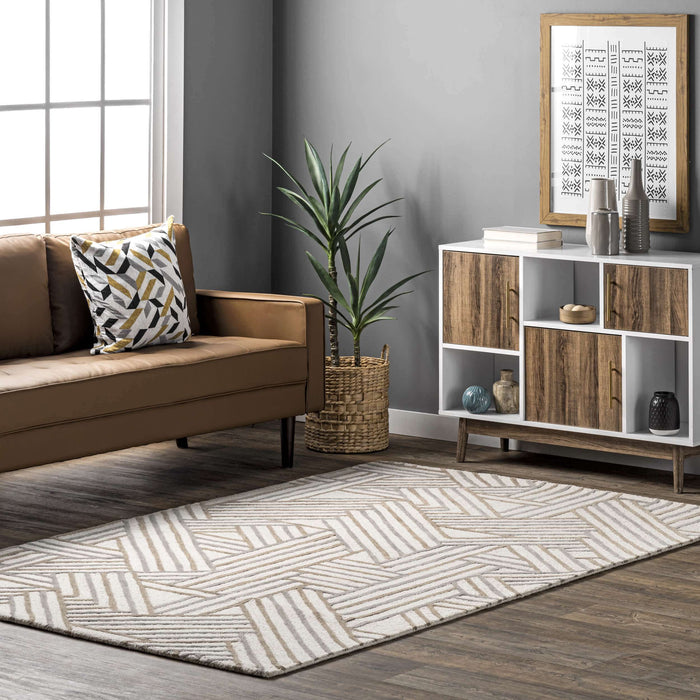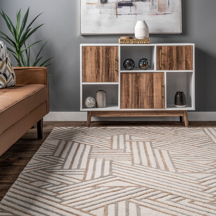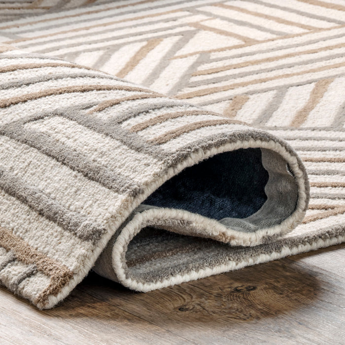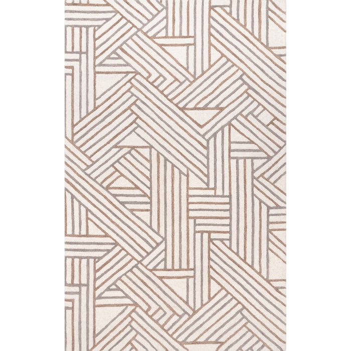 This hand-tufted wool rug with modern abstract design will add comfort and warmth to any contemporary home.