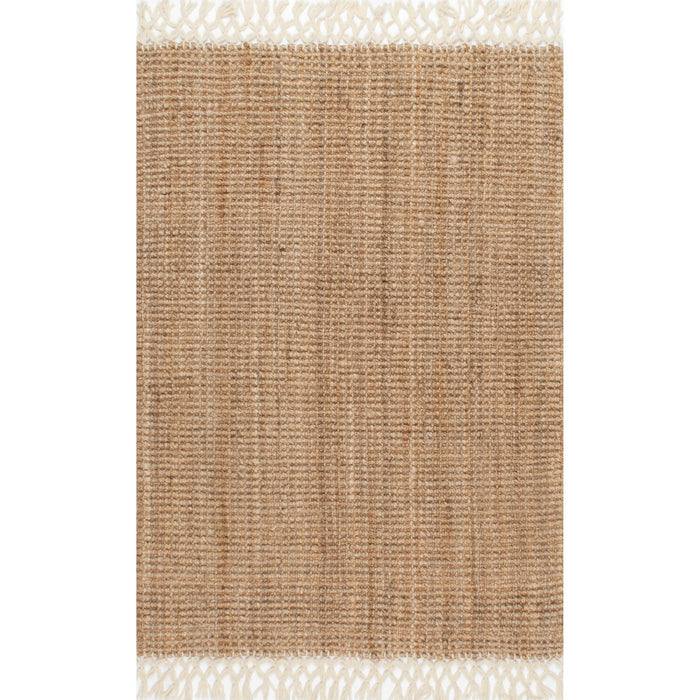 Hand crafted of jute in India this rug is the perfect addition to cottage, farmhouse, or coastal decor. Complete with intricate wool fringe detailing on either end.