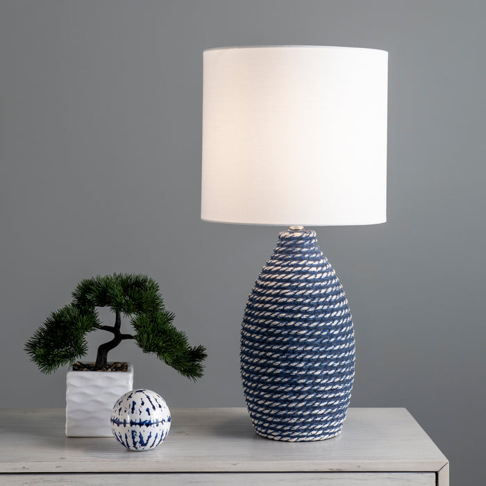 A fabric drum shade spreads gentle light adding a cozy atmosphere to any space in your home