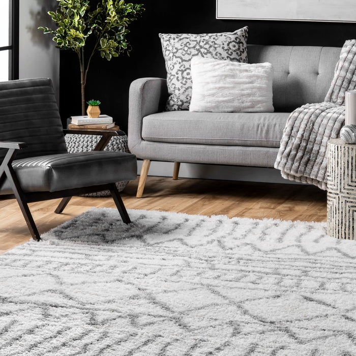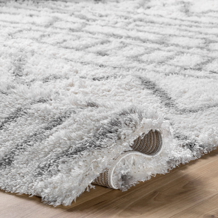 Luxuriously soft and plush, this Moroccan-inspired rug features a geometric pattern and a low-maintenance shag weave. The perfect mix of comfort and contemporary style, this rug will complement any modern decor.