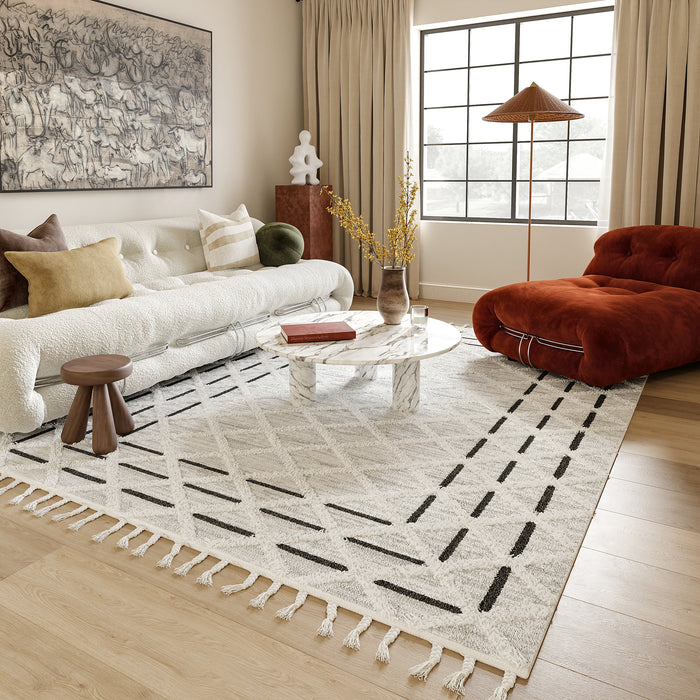 It’s giving elevated. It’s giving regal. It’s giving everything we want in our home. The sophisticated trellis pattern of the Ventana Rug is exactly the design we didn’t know we needed. This piece masters the blend of minimal and bold. The contrasting linework is visually stunning, and the braided tassels complete the look with ease.