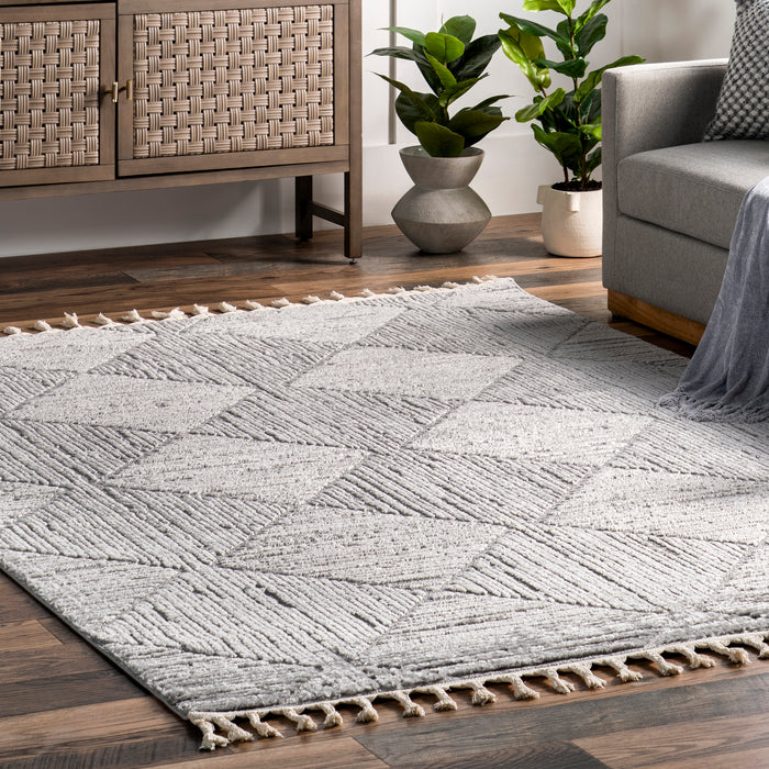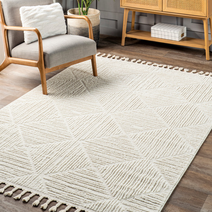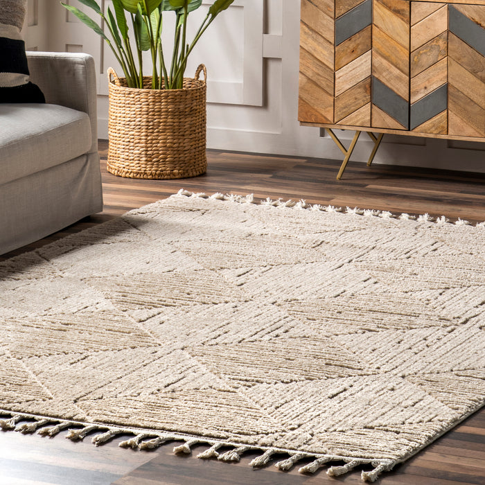 Kerry Textured Geometric Tasseled Area Rug