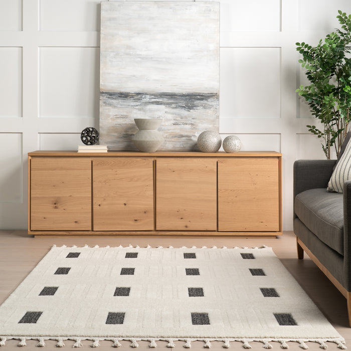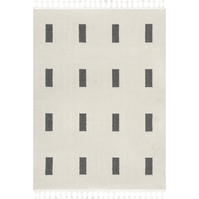 Elevate your living spaces with this floor covering, delivering a chic and fashionable aesthetic in the most essential areas. Designed in trendy and welcoming color palettes, this rug is meticulously crafted using robust materials, ensuring its enduring presence in your home decor. With its low-maintenance characteristics, this area rug effortlessly enhances any environment. Adorned with high-low 3D designs and tasteful tassels, it becomes a versatile addition, suitable for your dining area, living room, or any space in your home seeking an elevated and refined ambiance.