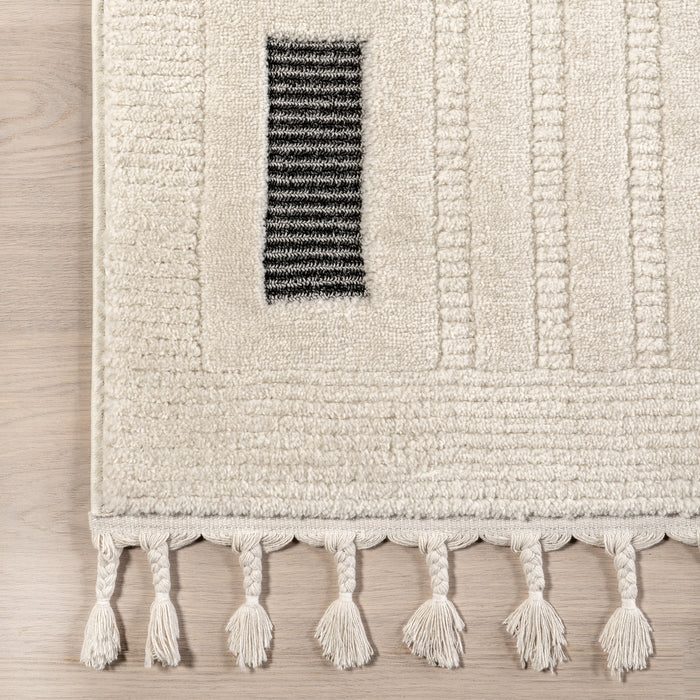 Paccia High-Low Modern Striped Tasseled Area Rug