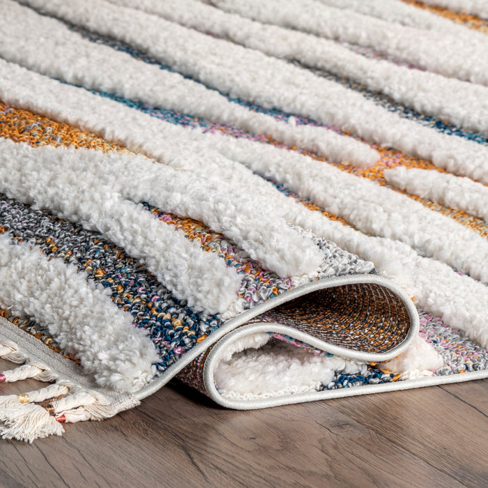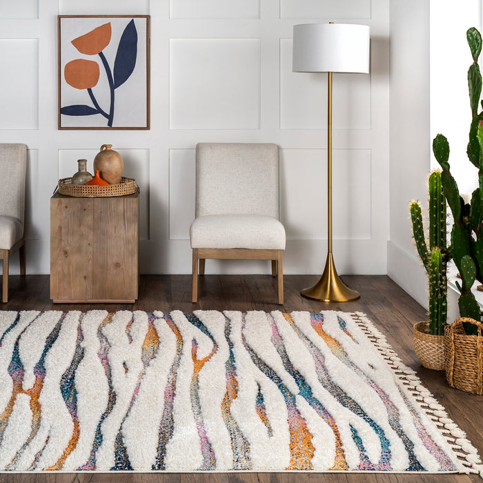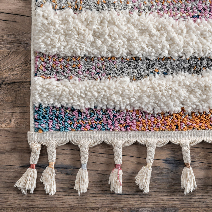 Jodie Rainbow Zebra Braided Tassle Area Rug
