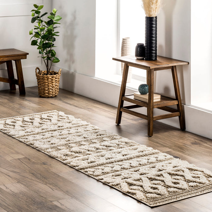 This gorgeous high-low shag will create a luxuriously soft oasis for your feet. With its stunning pattern, this area rug doesn't lack one ounce of style or detail. It is built to handle regular foot traffic and will add a homey feel to any space.