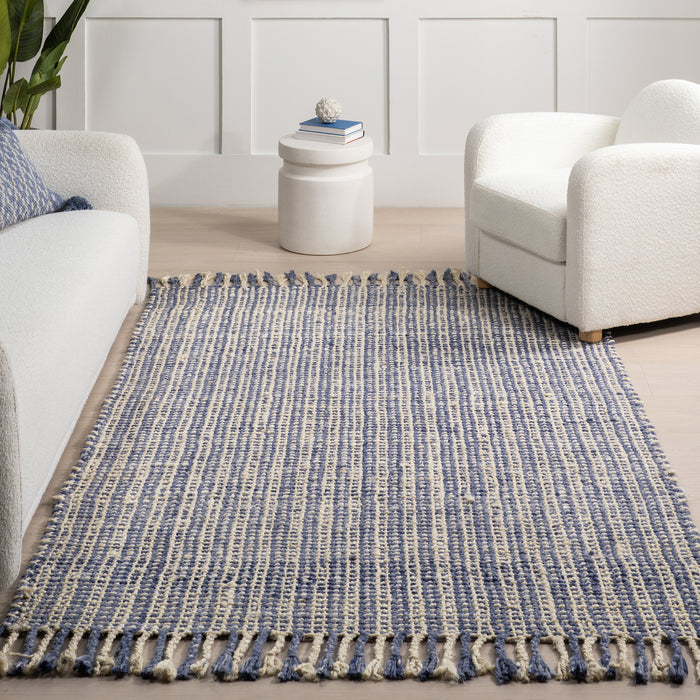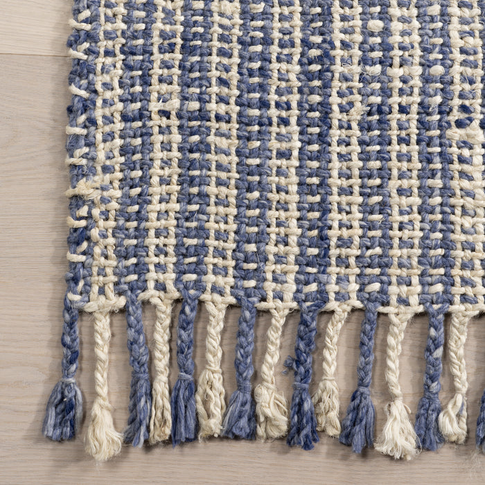 A charming farmhouse striped area rug featuring a classic striped pattern that complements farmhouse design aesthetics. Handmade using PET yarn and jute, this rug offers a textured and earthy feel, adding warmth to indoor spaces. Its handmade construction ensures high durability, making it suitable for areas like the bedroom, living room, dining room, hallway, and kitchen. Additionally, this rug is kid-friendly and pet-friendly, making it a practical and stylish choice for various rooms in your home where a farmhouse touch is desired.