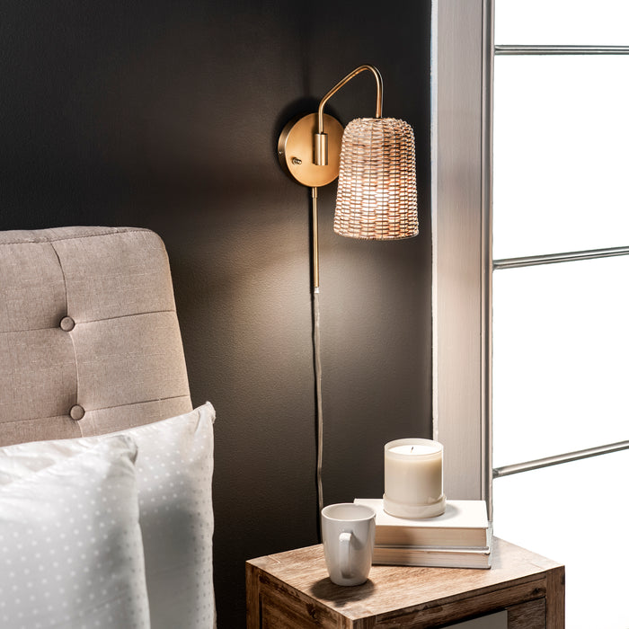 With this stylish and sharp plug-in wall sconce, you can calm the ambiance in your home. The natural tone has a relaxing appearance that complements nautical-themed household decor. The fixture's scale complements the distinctive shape, putting the design into balance. Hand-crafted in India, this sconce promises to brighten whichever space you choose to set it.