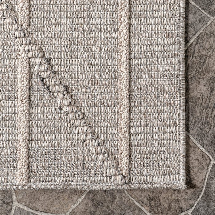 Soft color, modern design and versatility is now yours with this beautiful machine-made indoor/outdoor rug. Crafted using durable synthetic materials, this rug cushions your feet for ultimate comfort, and can create the perfect ambiance whether you decide to use these indoor or outdoor. A neutral color scheme with a high-low design makes this the ideal rug that pairs with any of your existing decor. Enjoy your time at home with our pet-friendly and easy to clean area rugs.