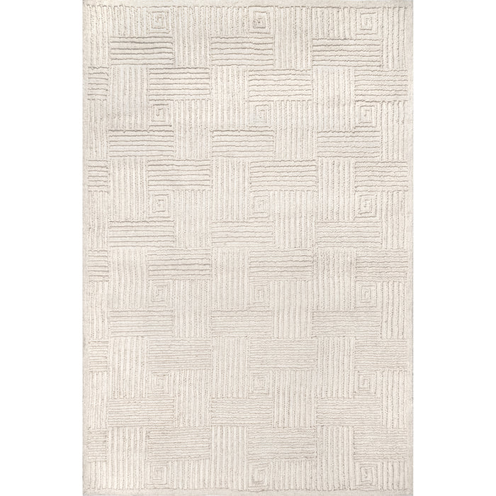 Mallory Hand Hooked Wool Geometric High Low Textured Area Rug