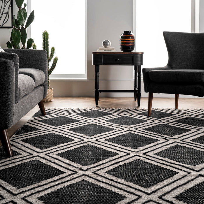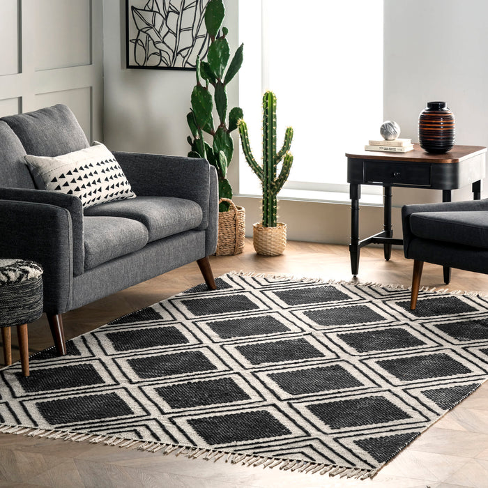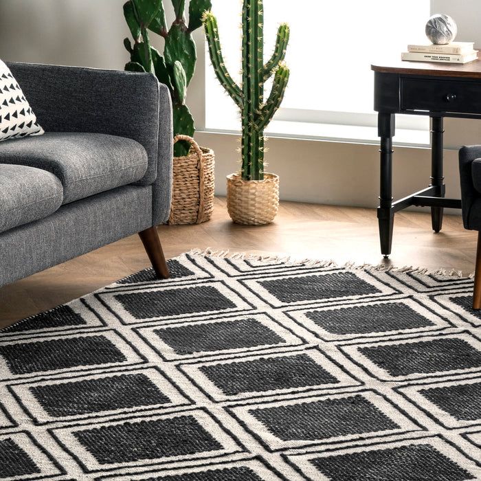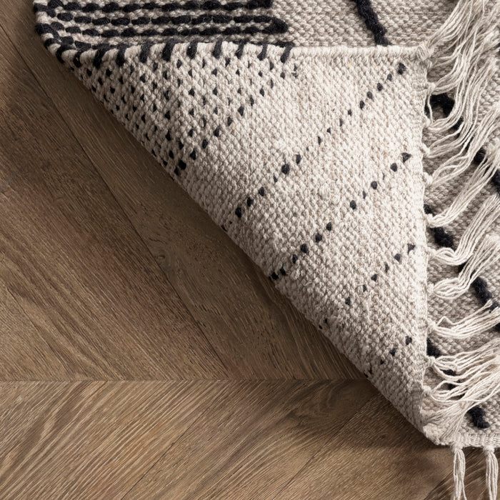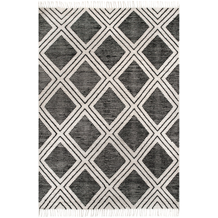 Neutral, sleek, and refreshingly lightweight this rug will make a wonderful addition to your home. The diamond pattern and wispy tassels will make a perfect addition to existing contemporary decor.