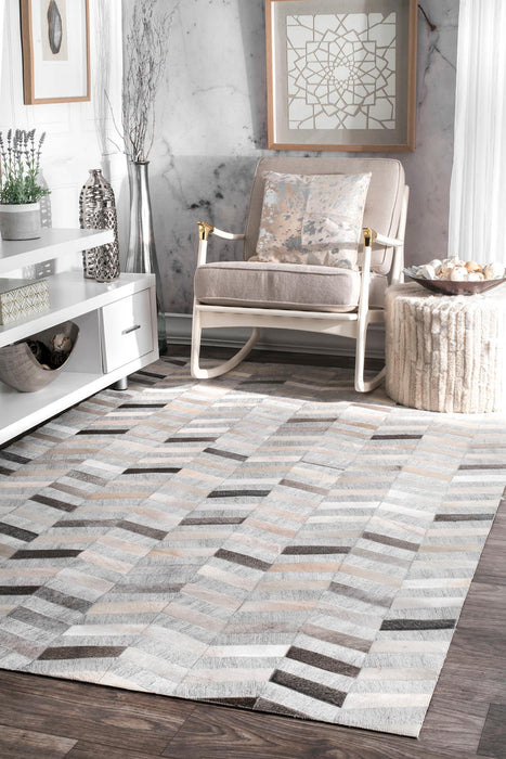 At nuLOOM we believe that floor coverings and art should not be mutually exclusive. Features: Style: Comtemporary, Geometric Material: 60% Viscose, 40% Leather Weave: Handmade Origin: India