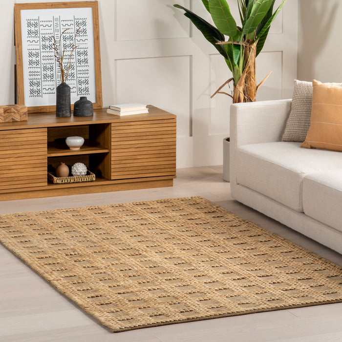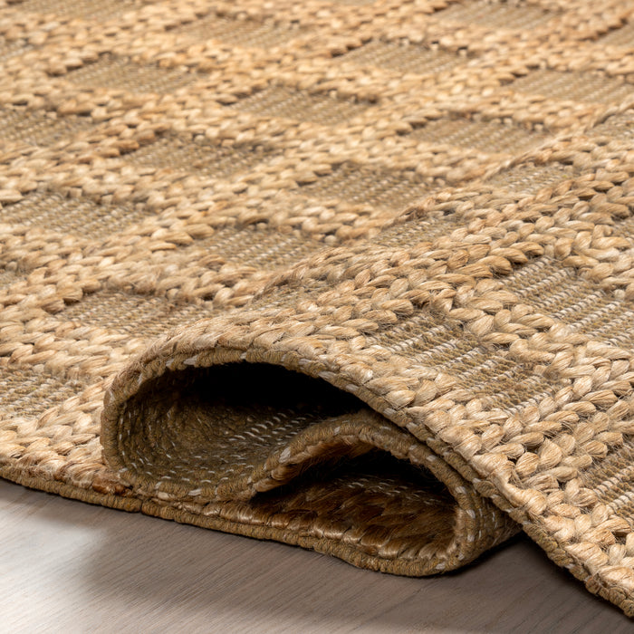 Embrace the essence of natural elegance with our premium hand-braided jute rug. Meticulously crafted, it radiates rustic charm and timeless allure. Bid farewell to shedding concerns and savor its enduring beauty. The high-low texture forms a captivating interplay of patterns, imbuing your space with depth and character. Its checkered pattern within a neutral palette makes it a perfect addition to any living area. Elevate your home with this rustic masterpiece today.